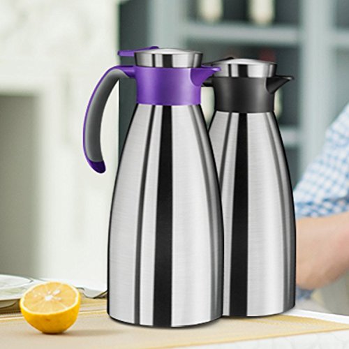 Darüber hinaus punktet dieses Modell mit einer schicken Optik, die einen wertigen Eindruck macht und das Potential hat, jeden Haushalt optisch aufzuwerten. Allerdings leckt der Gießtrichter ein wenig, wenn Sie Ihre Getränk zu schnell ausgießen. Der Erfahrung nach hält die Thermoskanne allerdings nicht so lange warm, wie vom Hersteller angegeben. Sie ist für die Preisklasse jedoch noch lange genug warm. Dafür besitzt die verhältnismäßig günstige Thermoskanne aber eine 100% Zufriedenheitsgarantie für ein ganzes Jahr und ist aufgrund ihres robusten Materials quasi “unzerstörbar.”
