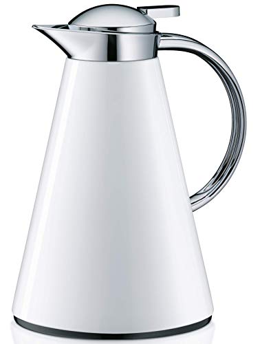 Die Isolierkanne von WMF überzeugt einerseits mit einem edlen Design, andererseits sowohl mit einer soliden Verarbeitung als auch einer guten Isolierwirkung, die Ihren Kaffee und Tee sehr lange angenehm temperiert halten. Die Kanne hat außerdem einen praktischen Druckverschluss, der sich leicht bedienen lässt, einen austauschbaren, geschmacksechten Glaseinsatz und ein Fassungsvermögen von 1 l. Sie hat insgesamt also alles, was Sie in der Küche oder unterwegs benötigen.
